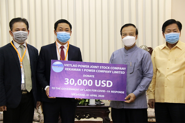Ngày 01/4/2020, tại Văn phòng Thủ tướng Lào, Đại diện Công ty Cổ phần Điện Việt Lào/Công ty TNHH Điện Xekaman1 đã trao tặng cho Chính phủ nước CHDCND Lào số tiền 30.000 USD, chung tay cùng Chính phủ và nhân dân Lào trong cuộc chiến chống lại dịch bệnh viêm đường hô hấp cấp do Virus SARS-CoV-2 gây ra tại Lào.